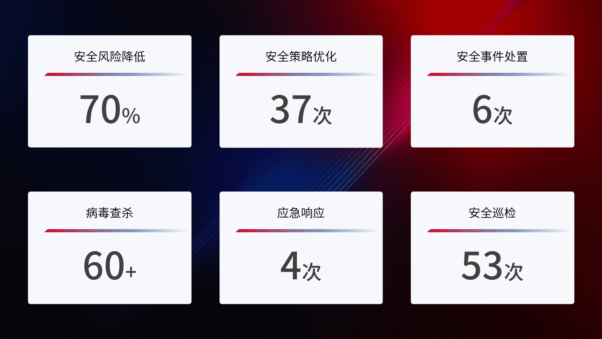 提供全面的安全事件报告体系,,包括处置报告、、、周报、、季度和年度总结,,,,结合持续监控,,帮助客户深入了解网络安全状况。。